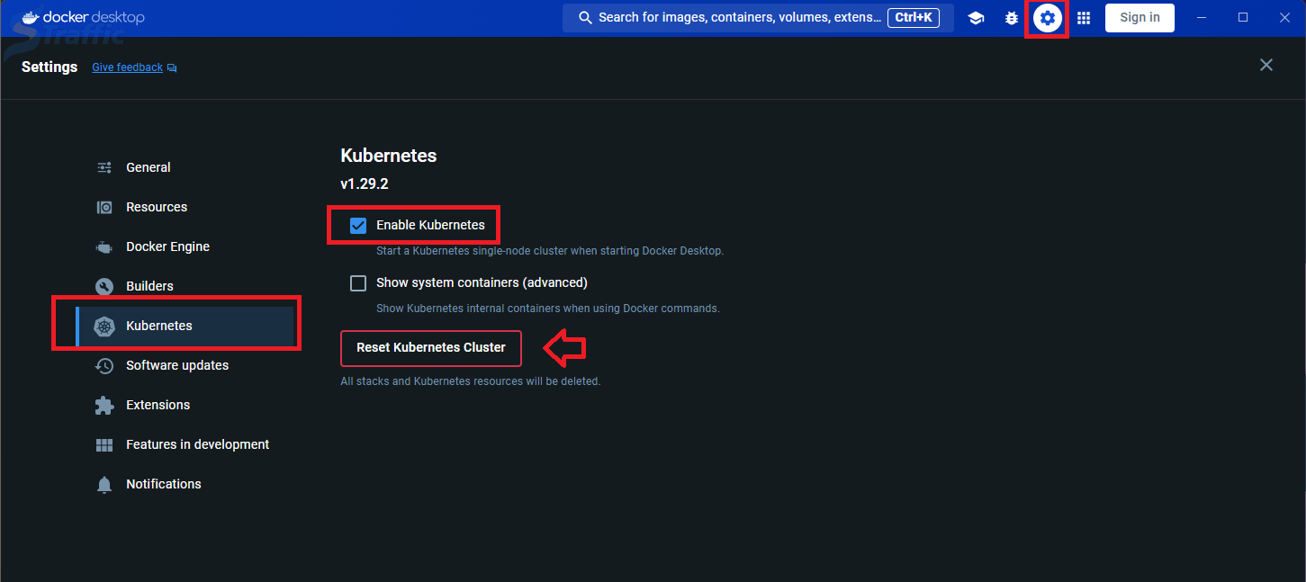 설치 후 실행하고 우측상단 설정 > Kubernetes > Enable Kubernetes 체크 > Reset Kubernetes Cluster