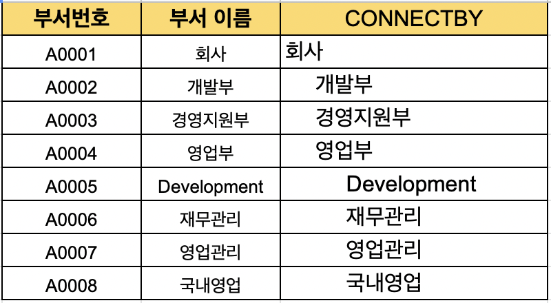 CONNECT BY PRIOR 부서번호 = 상위부서번호;