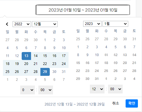 - 해당 설정을 html의 input 태그에 적용하여 사용자가 input 태그를 클릭 했을 때 달력이 팝업되도록 한다.