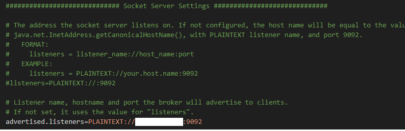 압축 푼 폴더에 config 폴더 -> server.properties 파일에 advertised.listeners 설정을 해준다.