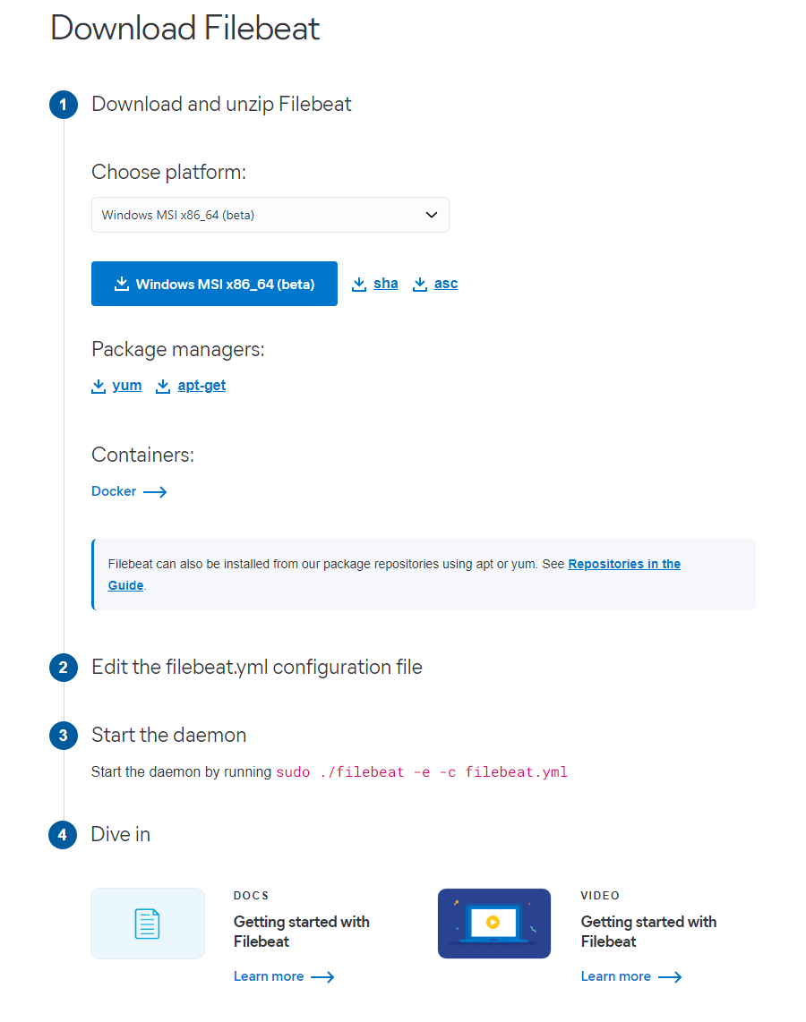 여러가지 목적을 위해 필요한 거라면 각 용도에 맞게 filebeat.logstash, filebeat.elasticsearch, filebeat.kafka 등등 사용해도 되고 필자의 경우 테스트를 위해 그냥 filebeat로 하겠다.