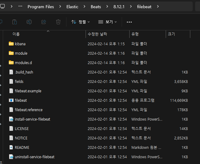 .\filebeat.exe -c filebeat.yml -e -d "*" (포그라운드 실행 + 로그확인)