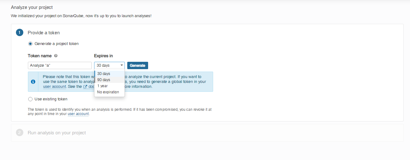 만료기간 정해두고 우측에 Generate 버튼을 눌러주면 토큰이 생성된다.