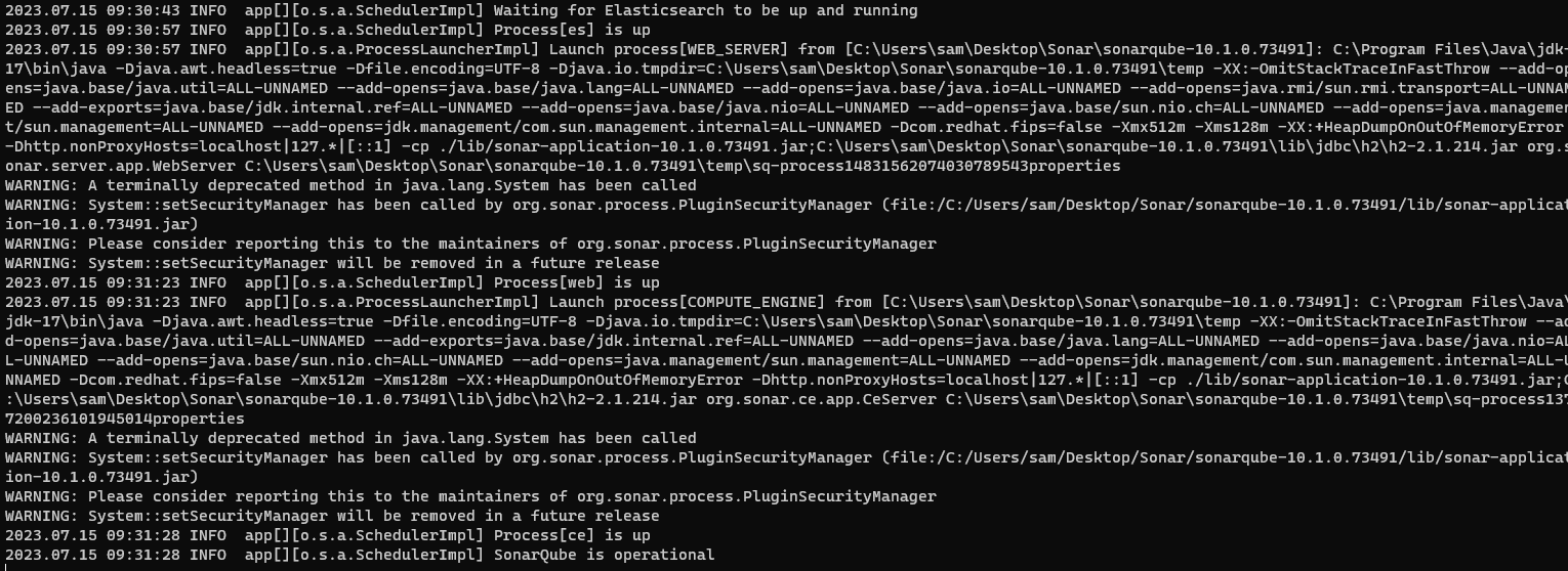 프로세스가 up 됐고 SonarQube가 Operational 이라고 뜬다.