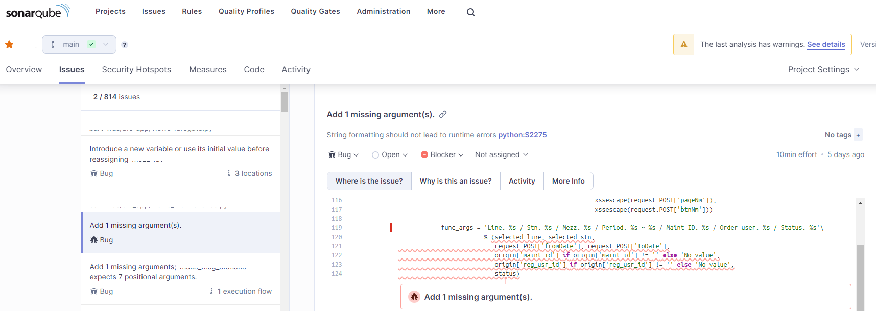 완성된 리포트에서 다양한 분석항목에 들어가서 어떤 것들이 버그로, 취약점으로 걸렸는지 확인할 수 있으며