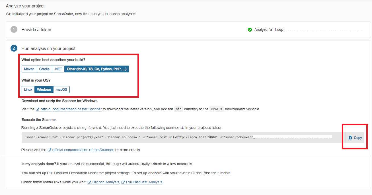 2. SonarQube GUI 에서 토큰 생성 및 SonarScanner 설정