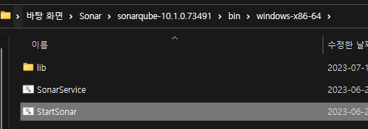 SonarQube를 실행하기 위해선 위 경로에 들어가서 StartSonar이라는 bat 파일을 실행하면 된다.
