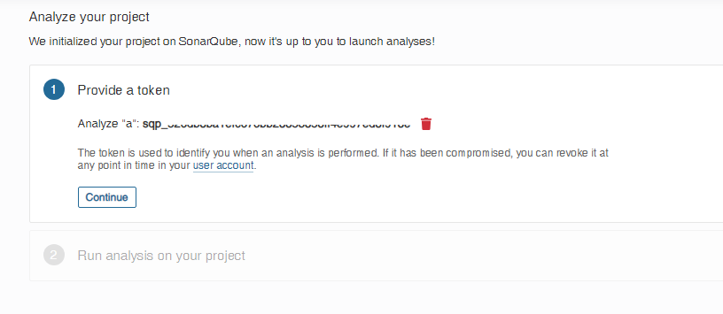 생성된 토큰은 제대로 보관해놓고 continue 를 누른다.