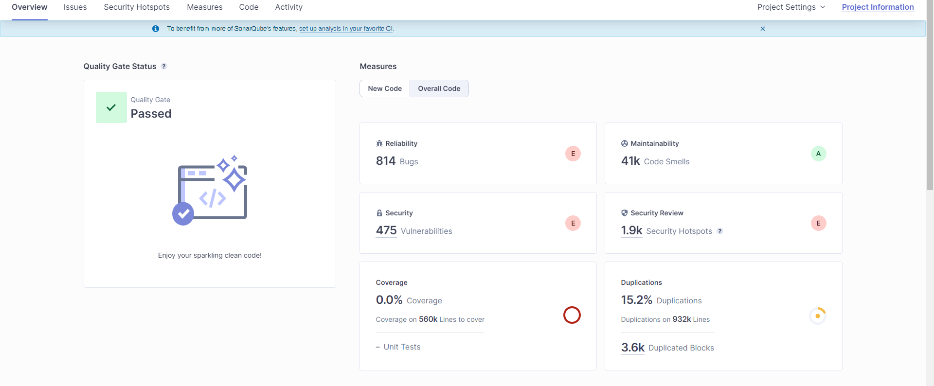 SonarQube는 프로젝트 전체를 한꺼번에 분석해서 그럴싸한 리포트까지 뽑아주는 툴이므로 필요에 맞게, 용도에 맞게