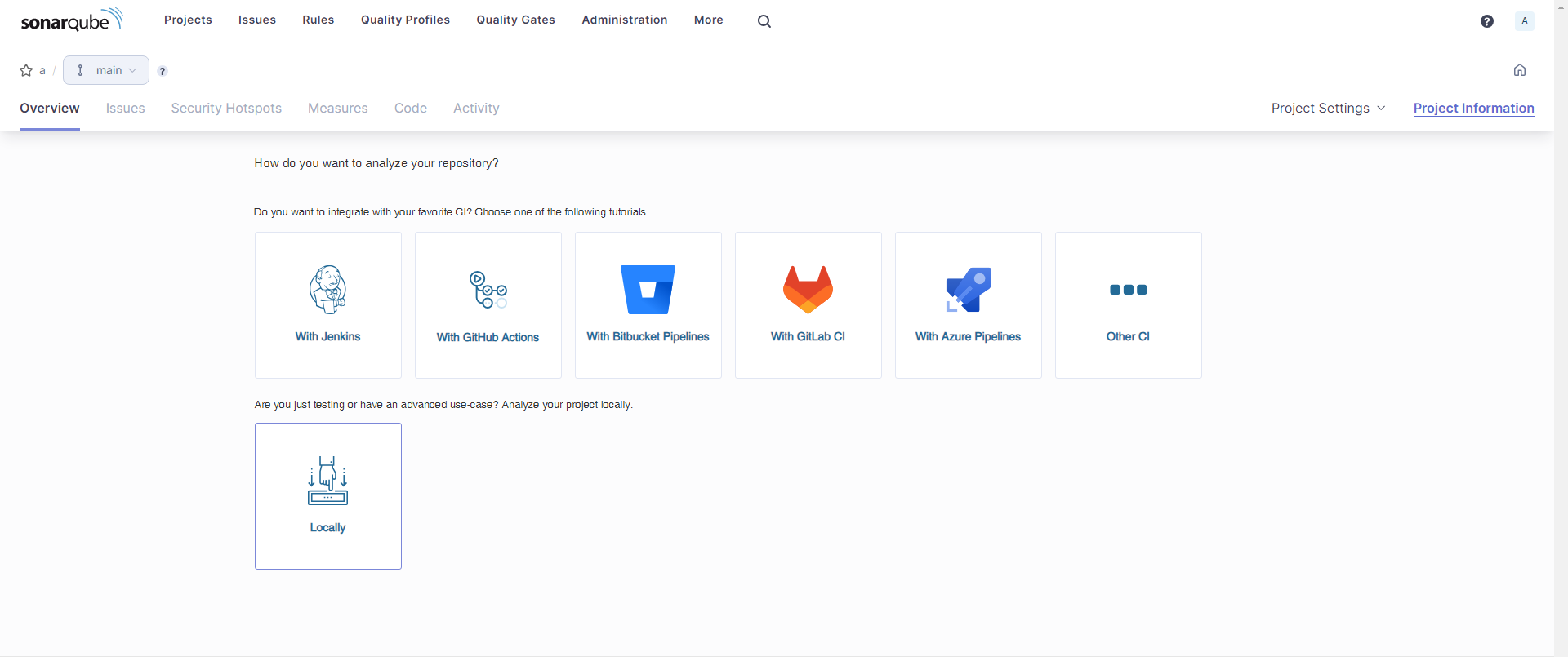 아무튼 한번 해본 사람은 More을 선택한 뒤 프로젝트의 소스코드가 있는 위치를 선택하면 된다. (테스트의 경우 로컬에 있는 소스코드를 수동으로 분석할 것이기 때문에 Manually) 프로젝트 이름, 키, 브랜치 이름등을 입력하면 된다.