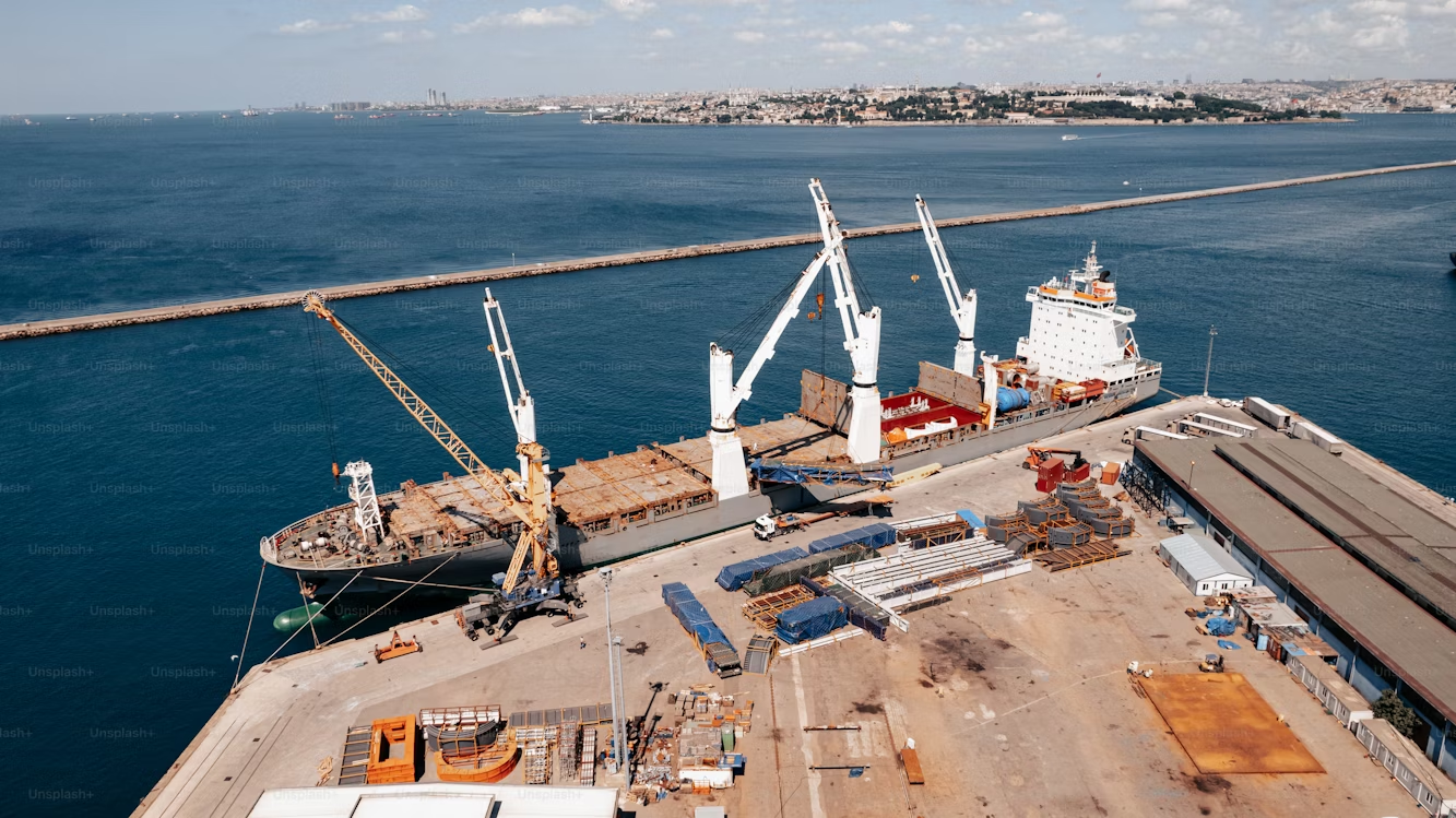 이 부두 노동자들의 도움으로 물건이 선박에 실렸다가 내려지는 것이다.